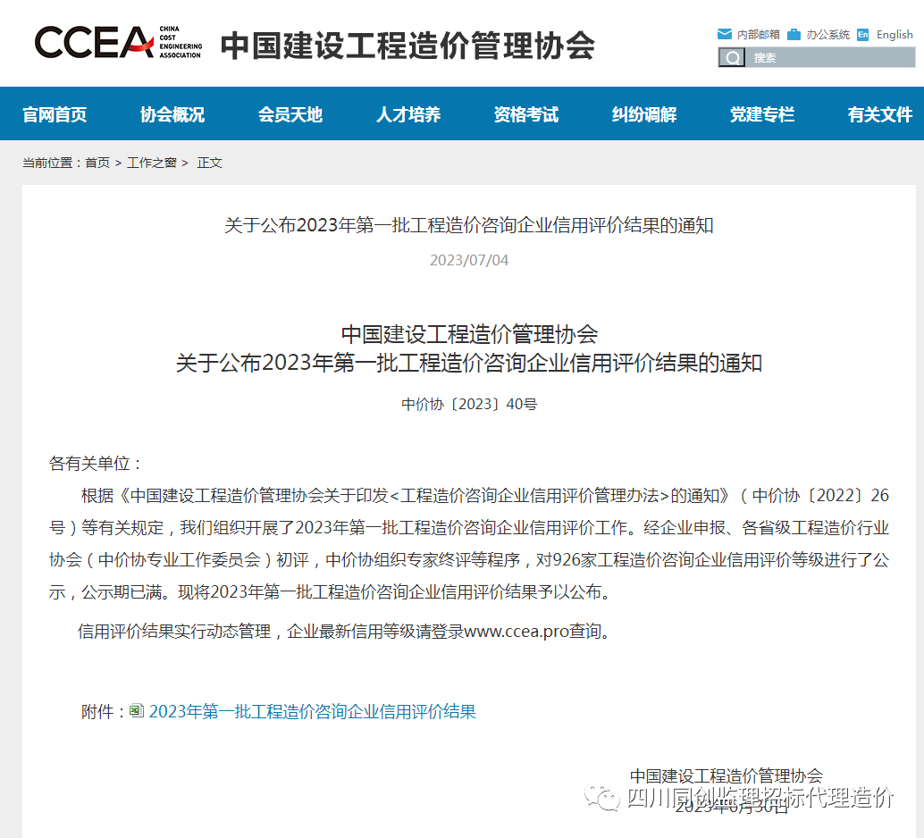 近日,中國建設工程造價管理協(xié)會發(fā)布關于2023年第一批工程造價咨詢企業(yè)信用評價結果的通知。四川同創(chuàng)建設工程管理有限公司榮獲中價協(xié)工程造價咨詢企業(yè)信用評價最高等級——AAA級,為公司更好地服務客戶、創(chuàng)造價值提供了強有力的資信保障!